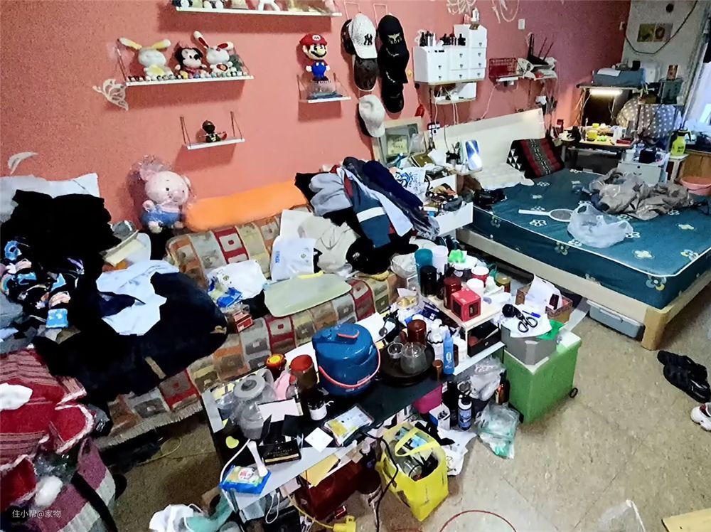 整间房屋的面积仅有50㎡,但里面却堆满了各种各样的杂物,收纳无序、清洁不到位,实在是让人头疼;无奈下,屋主只好请来几位保洁师(游呵),进行彻底的清洁和整理。