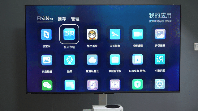 电视端会自动安装推送的软件,打开当贝市场后就可以下载任何第三方软件了。