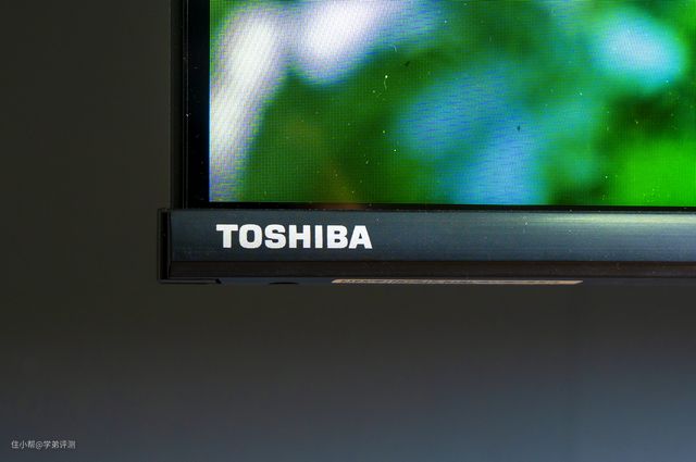 从图上可以看出东芝电视M540F底边框的宽度控制的也不错,屏幕底边框采用了黑色拉丝设计,东芝电视logo放在了屏幕左下角。