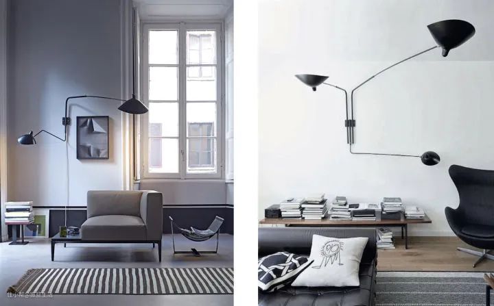 Serge Mouille有不同型号,从单臂到七臂,落地灯、吊灯、壁灯、台灯应有尽有,造型多变。加上灯头和灯臂可以调节,兼具颜值与实用性。尤其适合用来作为沙发壁灯,可以装饰背景,又能随时转过头来看书,堪称装饰灯里最能打的选手。
