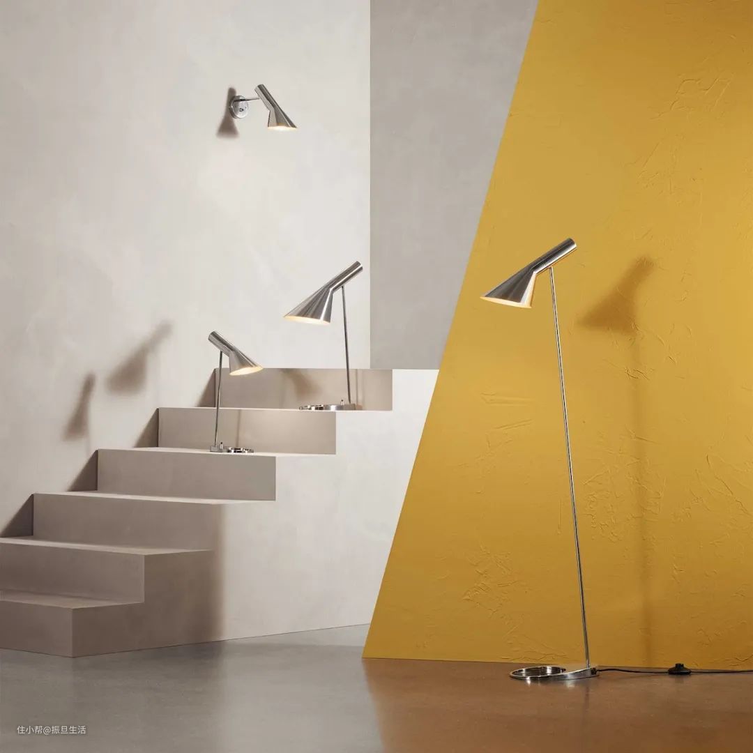 AJ灯是1958年雅各布森为哥本哈根拉迪森皇家酒店设计的,包括台灯、壁灯、落地灯、吊灯等不同款式。非常规又不会过分夸张的造型,越看越有味道。灯头可以调角度,非常适合作为阅读灯使用。