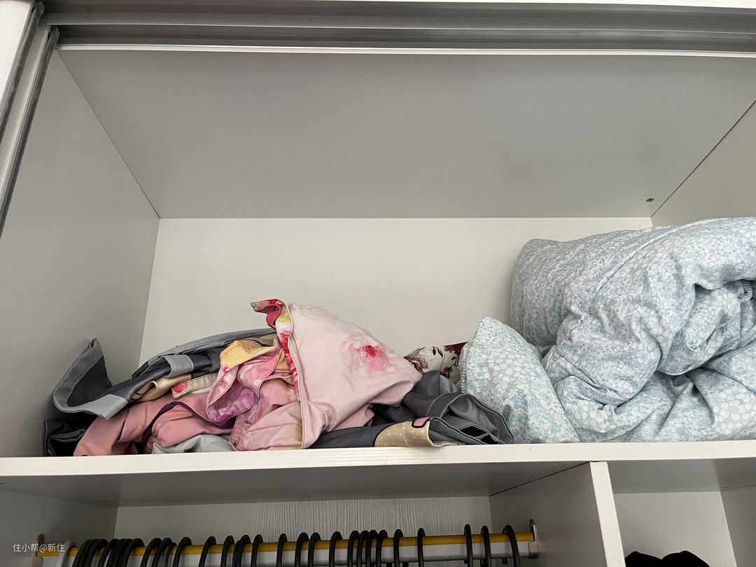 我家的衣柜高处,通常因为够不着,只有换季的时候搬个凳子,一个个叠放整齐。说实话,整齐保持也就几天,大多数时候都是下图的样子。