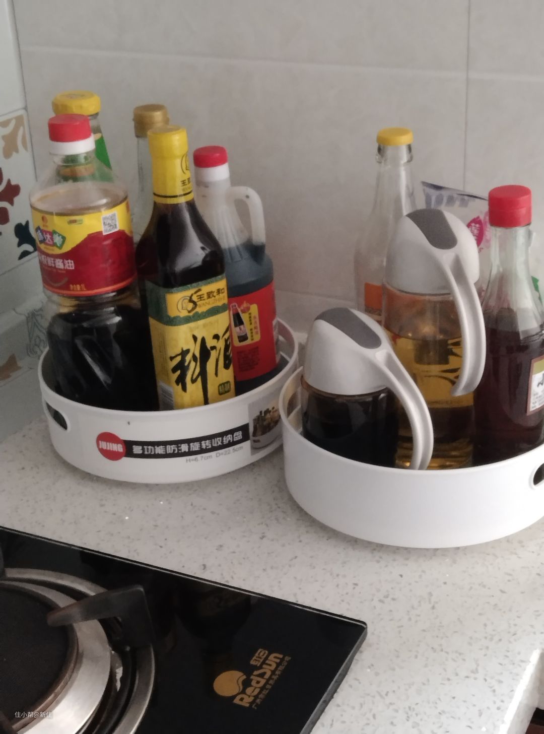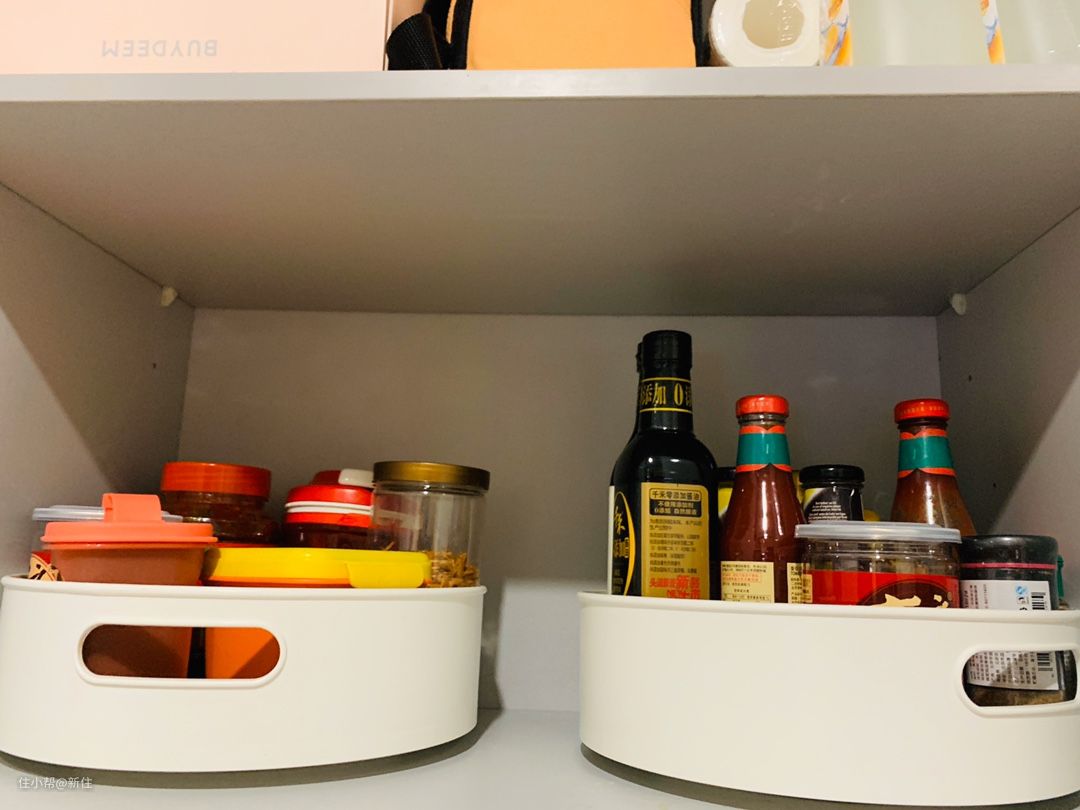 闺蜜说她不喜欢厨房台面凌乱,她家用的是旋转收纳盘收纳调料。