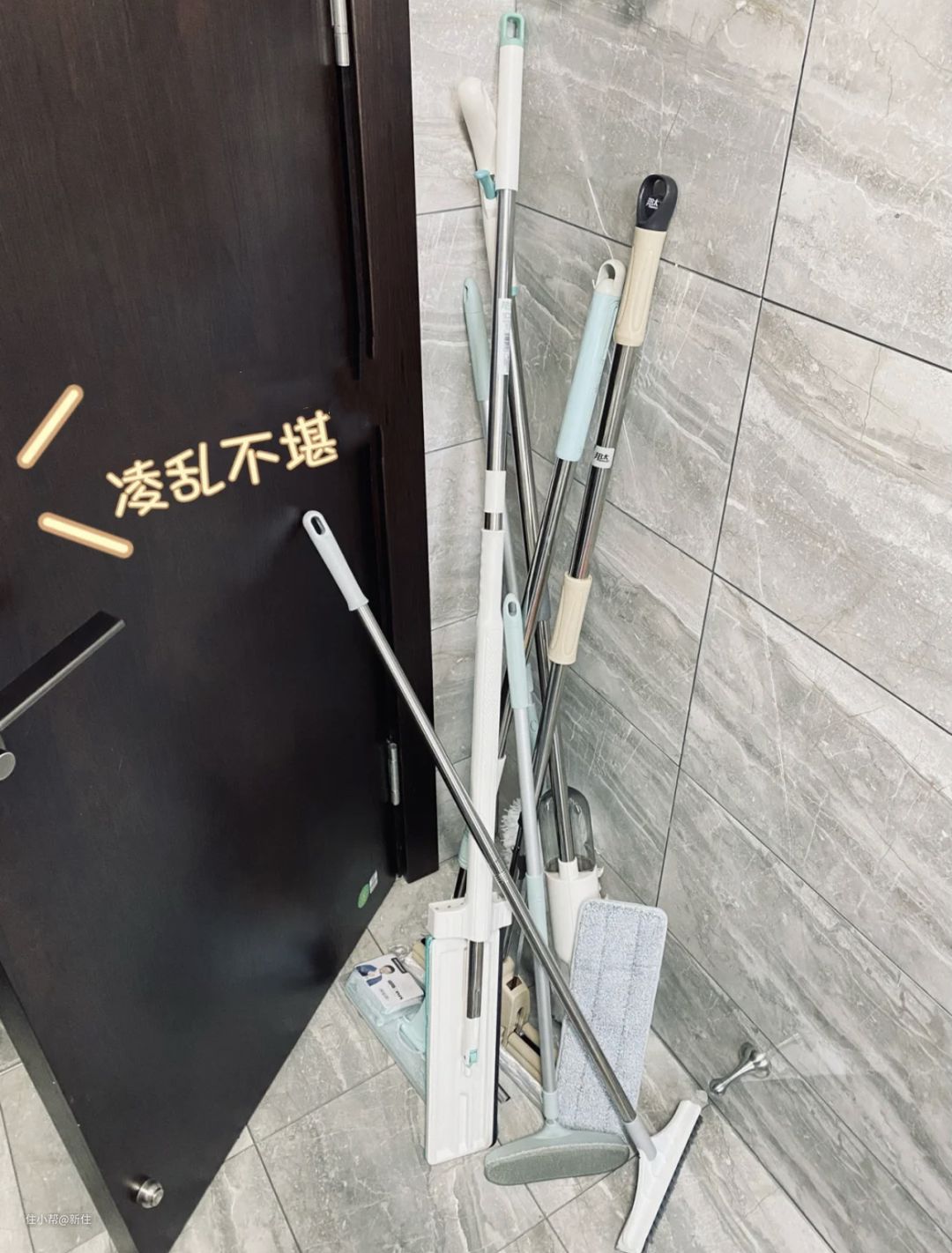 我家的清洁工具,可以说是没有收纳,就是堆在卫生间门后面。