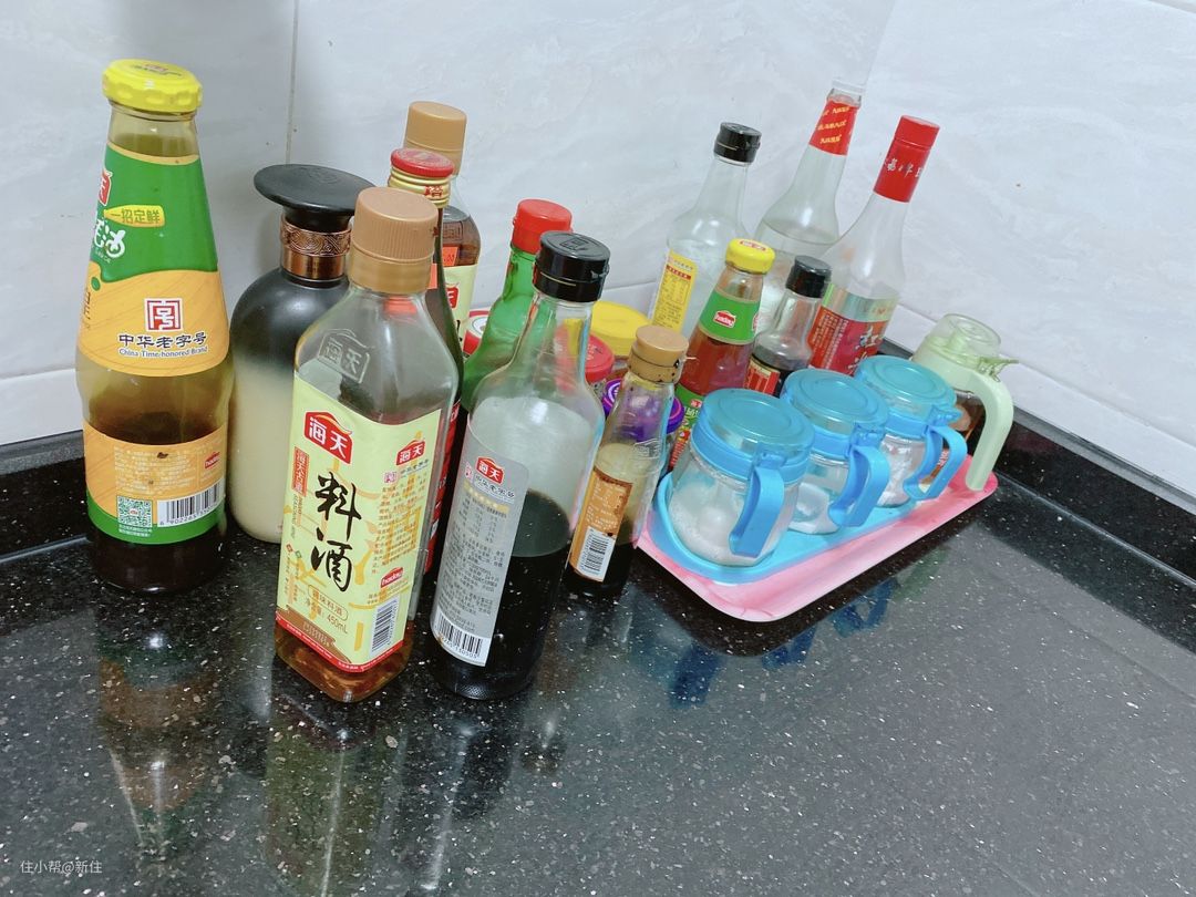 今天家里人多,她把整盘调料端出来放在台面上,用起来方便点儿。