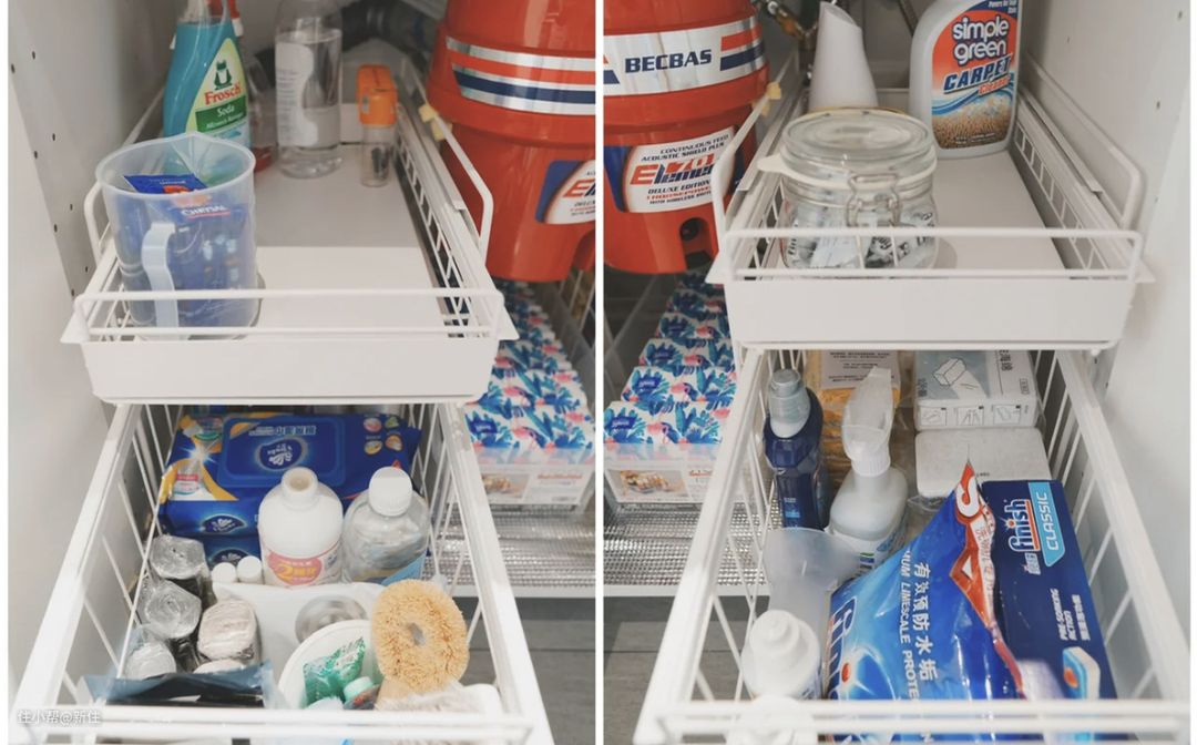 人家的水槽下面都是这么精致,我真的自愧不如了,好好向她学习。