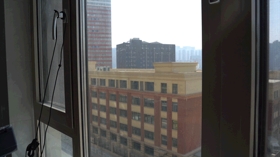 实际使用起来非常方便,只要打开底部的拨动开关,听到机器风扇发出风扇的声音基本就可以了,然后将擦窗机器人靠近玻璃,蓝宝这台机器人就能稳定的吸附在玻璃上,当然为了安全起见,建议还是要把安全绳固定好以防擦窗机器人意外掉落。