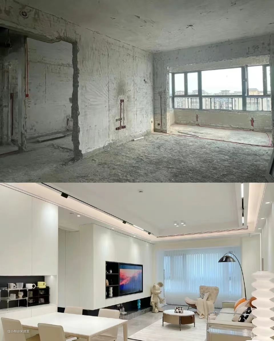 石膏板接缝到V字接口、石膏板拐角处用整版做L型(防止开裂)吊顶龙骨为全轻钢龙骨、隐藏石膏板垫层、门窗基层、石膏板平整度、油工材料进场、