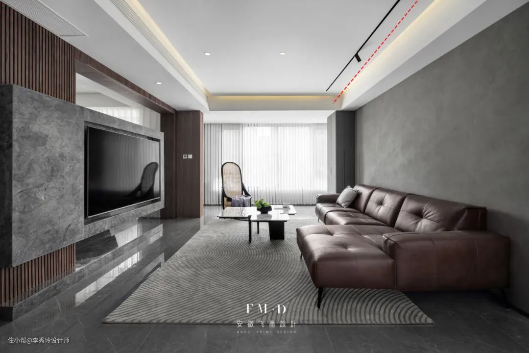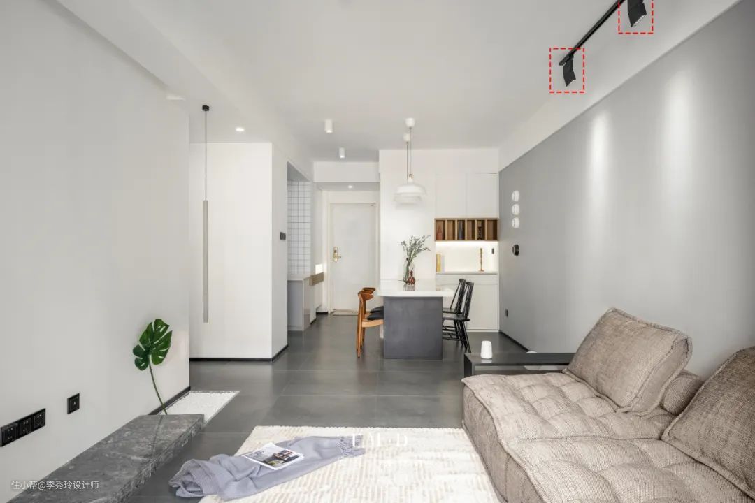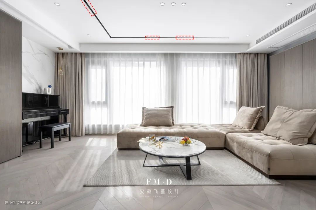客厅可以说是无主灯设计的主场,那当然也少不了磁吸轨道灯,还可以增加天花板的线条感,兼顾照明与视觉美感。