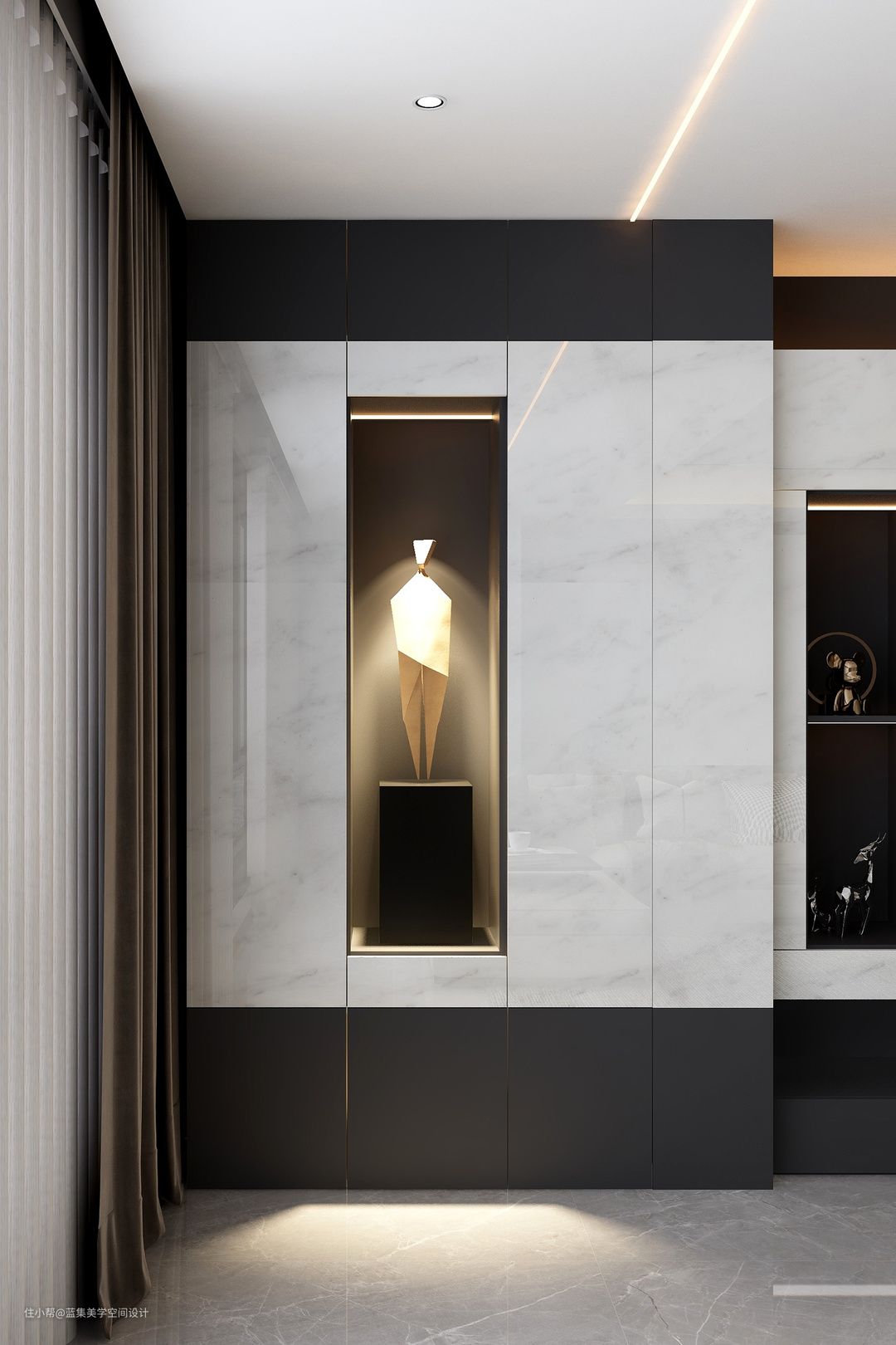 天然大理石拼配木质格栅,增强氛围感的吊灯,搭配得当的饰品和绿植,使得颜值和质感双重在线。在走进家门的一刻脱掉在外奔波的尘埃气息,迎面而来的是家的温暖。