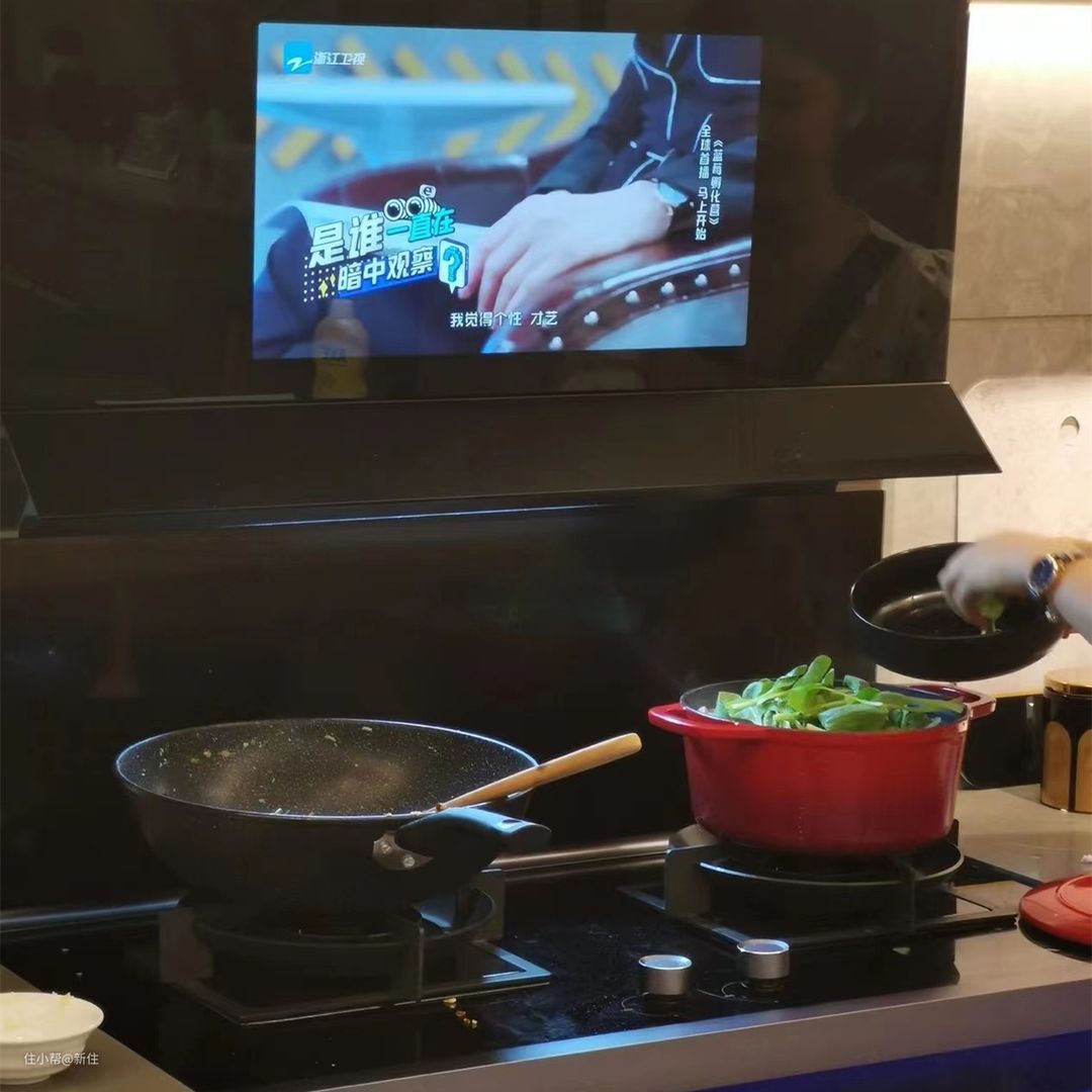 现在智能家居都推崇到连油烟机上了,在油烟机上加了高清led屏幕,号称是能实现边做饭边追剧。