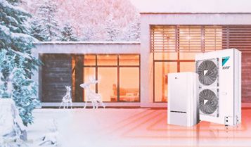 大金将中央空调和地暖集成在一套系统里,地暖采用空气源热泵技术,通过少量的电能,搬运大自然空气中免费的空气能,转化成热能,不光系统节能性好,而且运行也安全稳定,一年四季打造高效节能的舒适居家感受。