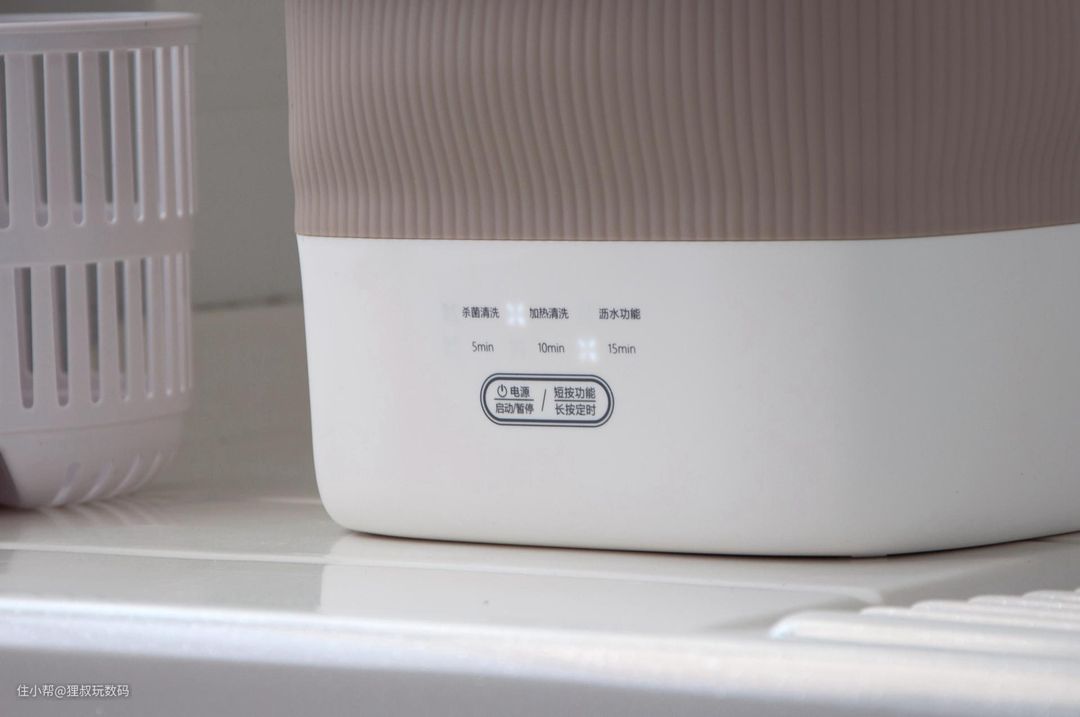 操作非常简单,点按/长按就能操作所有功能。第一次用我把儿子刚换下来的一套150码秋衣秋裤洗了,放进去刚好合适,加入洗衣液和水就能直接开洗了。大宇折叠洗衣机支持加热清洗和抑菌清洗,对于污渍比较多的衣服,我们可以采用加热+抑菌组合洗的方式进行洗涤,加热洗工作时洗衣机会自动先将水温加热至40℃,可以轻松溶解顽固污渍,工作时间为10~15分钟;抑菌洗更适合清洗内衣,选择抑菌洗工作时,臭氧发生器和银离子波轮会同时工作,臭氧全面覆盖衣物,可有效穿透细菌内部,无死角地深层杀菌,保护肌肤免受交叉感染。