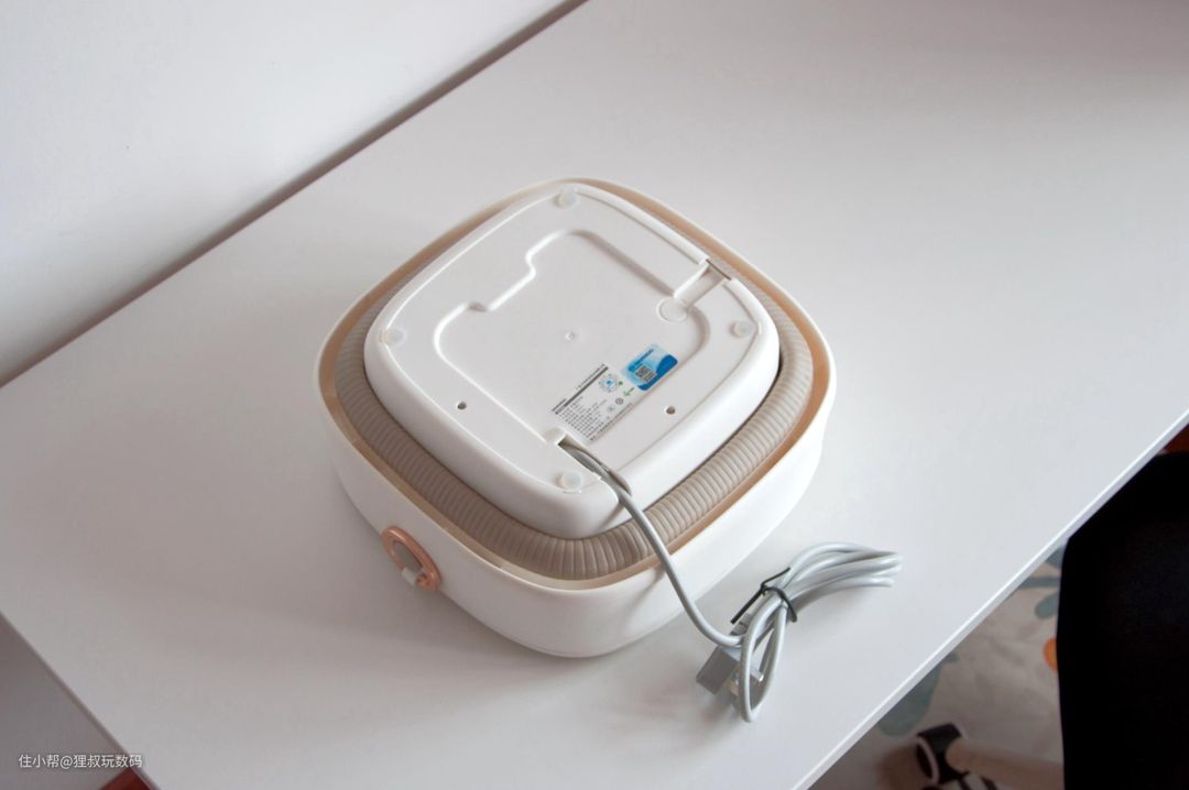 其实这款洗衣机的细节做得蛮好的,大宇折叠洗衣机的机身底部采用了错层设计,螺丝孔位置还搭配有防水胶帽,可有效防止水液进入机身内部造成损伤。一角设计有导线槽,可以保证机身平稳,使运行更加稳定。