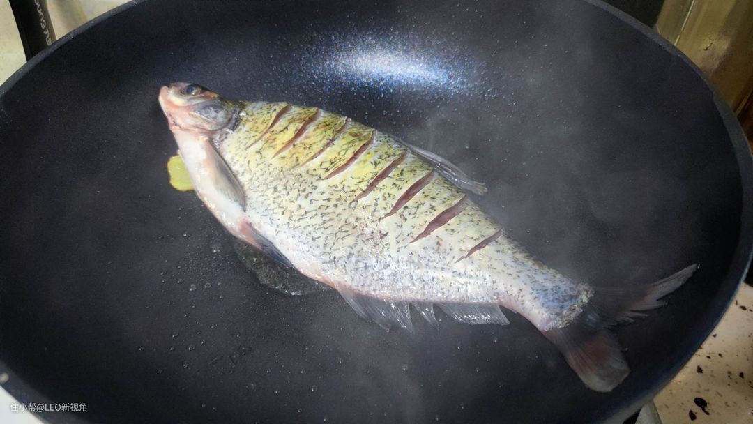 好不好,就继续实测,鳊鱼一条,用盐涂抹搁姜片腌制10分钟,热油下锅煎。