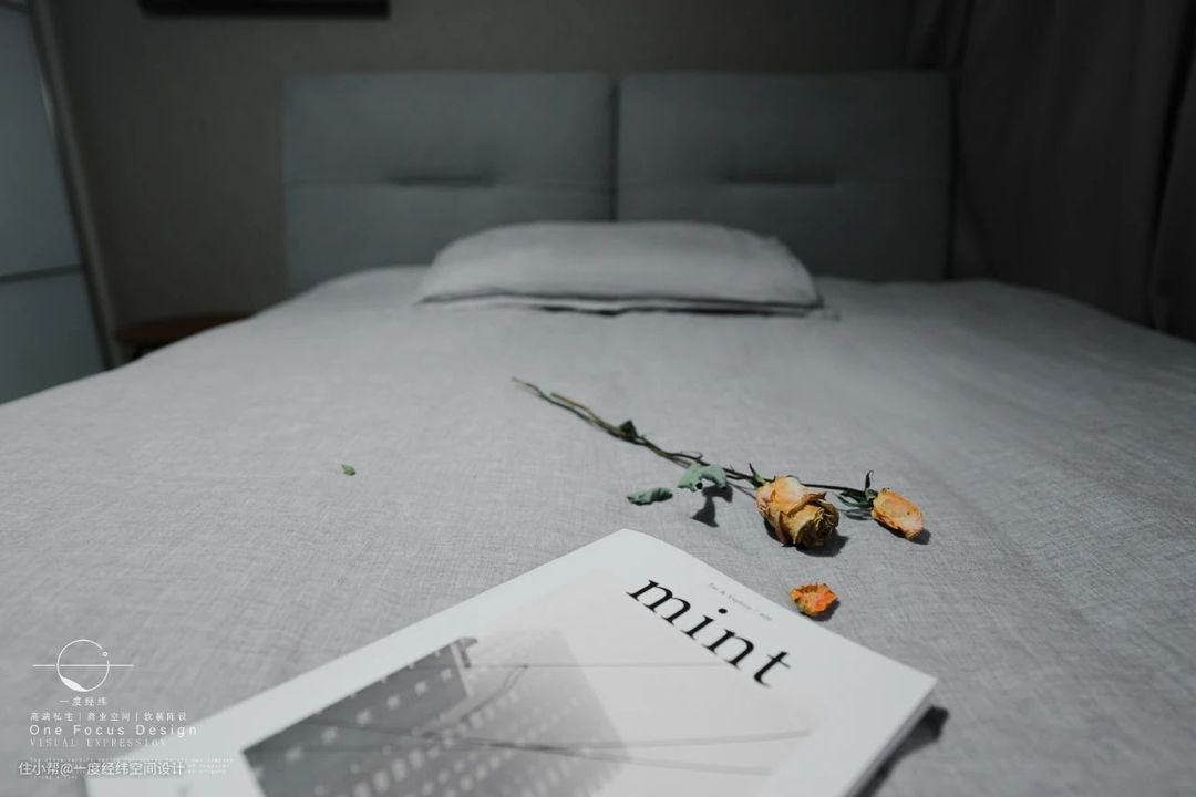 卧室体现的是一种精致简单的风格,灰白色为主调显得素雅大方,饰品的摆设点到为止,卧室的面积不大,这样不会显得拥挤,能够营造出舒适自然的生活氛围。