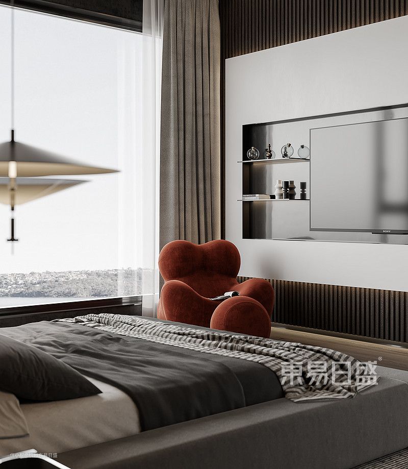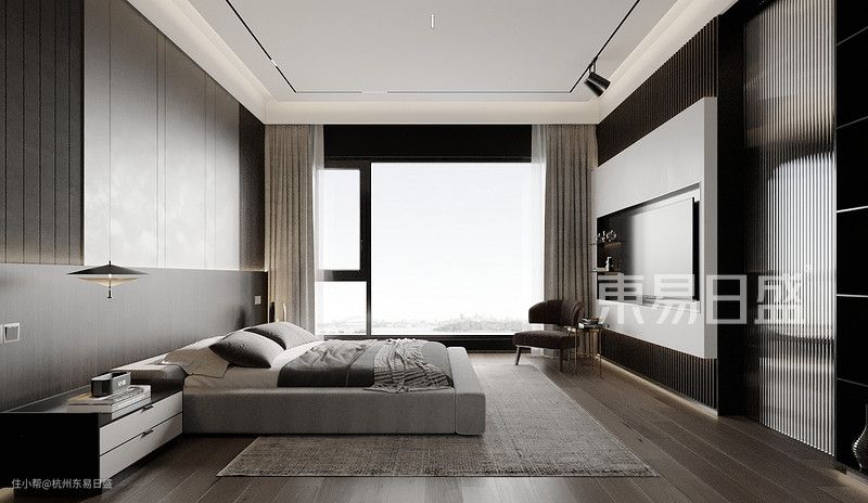 奢华与浮夸毫无关联,就像卧室里没有过于浮夸的装饰物或华丽的装饰一样。同样营造出简约大气而又及其富有奢华质感的空间感。
