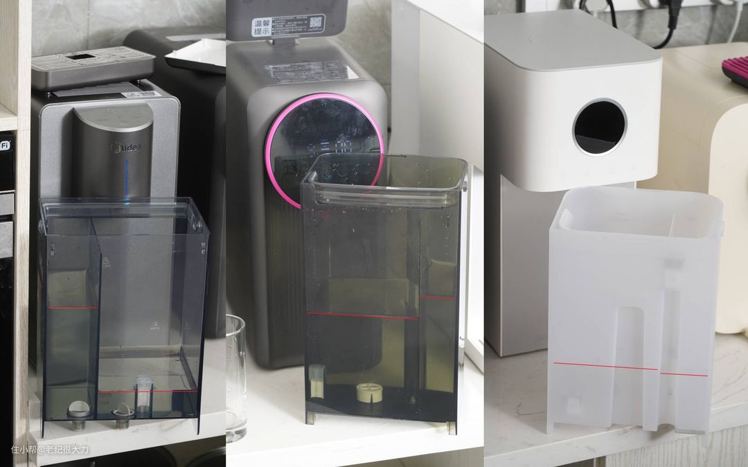 水箱总结:美的、沁园和小米均采用更推荐的双水箱设计,小米的容积最大。