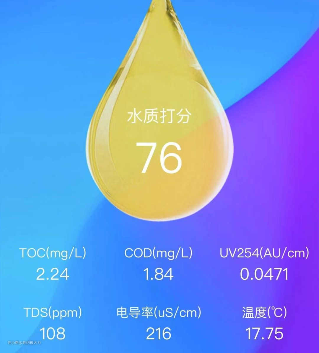 除了能测TDS,还能测TOC(总有机碳,反映水质有机污染的指标);COD(耗氧量,反映亚硝酸盐等污染指标);UV254(大分子有机物,反映余氯等污染指标)等参数。