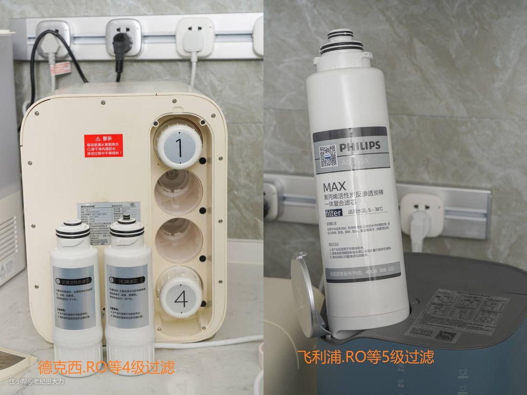 飞利浦使用一根RO滤芯5级过滤,滤芯寿命为1年,价格为499元。