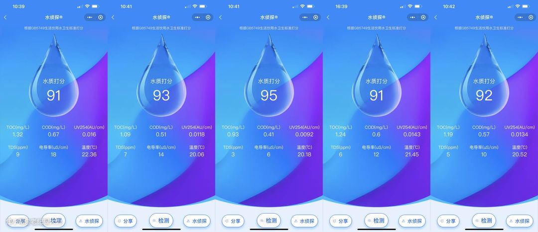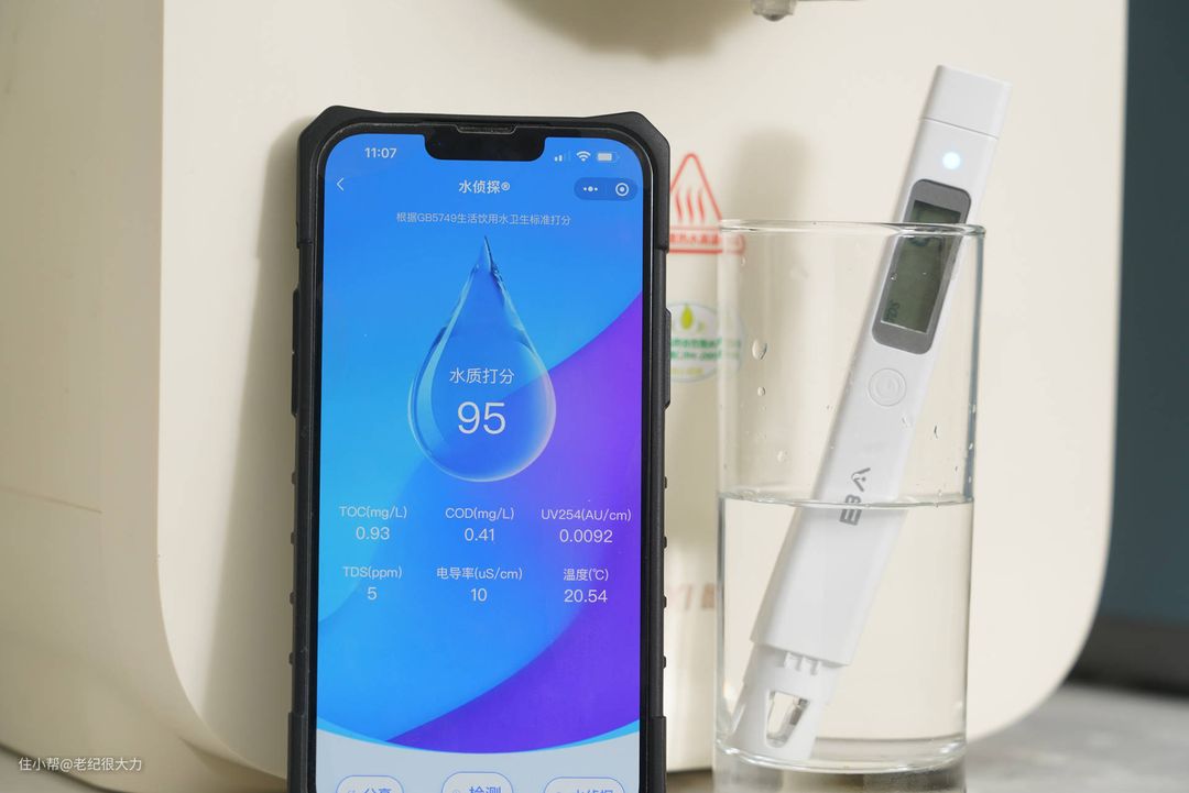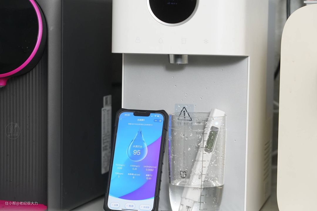 小米净饮机综合得分95,并列第一,其中TDS只有3,是5台净饮机里表现最好的。