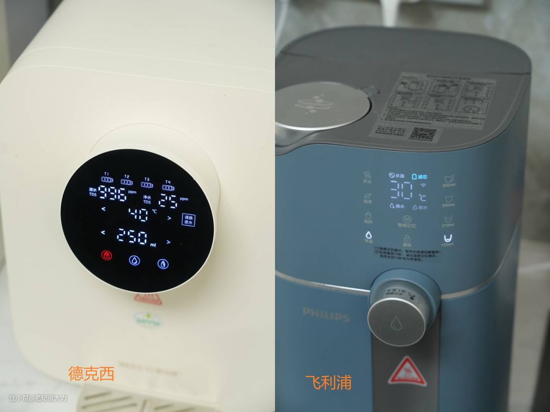 从出水量的温度和容量来看,小米净饮机可以精确选择适合自己的温度和适合水杯的容量,表现最好,不过德克西的温度、出水量选择档位也很多。继续往下看其他方面的对比。
