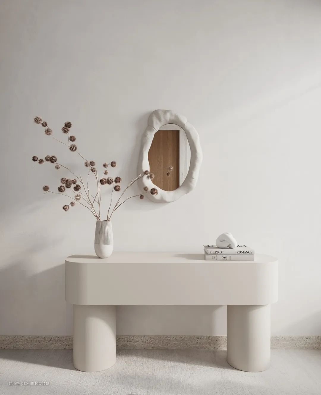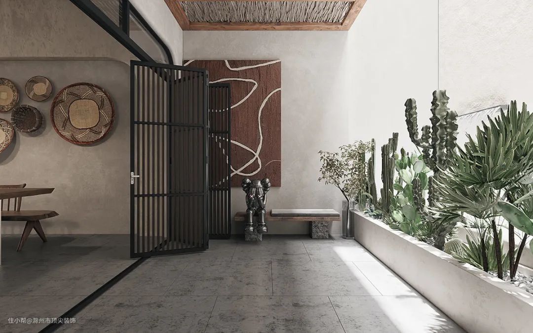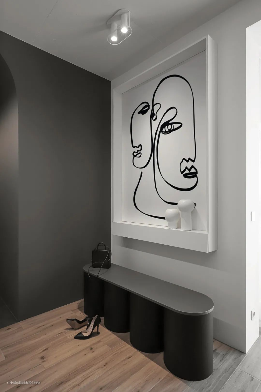 在空间狭小的玄关中,有很多业主似乎都喜欢将鞋柜和玄关绑定在一起,鞋柜的摆放相对来说比较占地方, 变换成其他的摆设或者装饰,弱化玄关空间,转型焦点的作用更强。