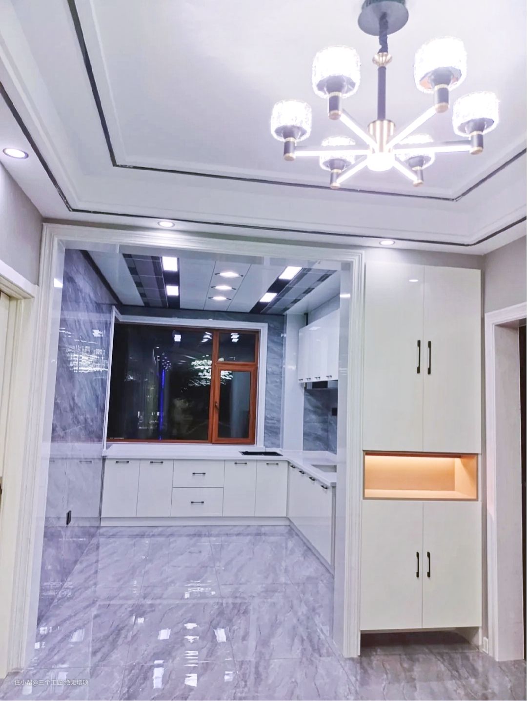 吊顶装修过程中一定要协调好吊顶和橱柜的安装时间和注意事项,装成上图那样肯定不行,而且柜顶上面还容易积灰不好清理。吊柜要装通顶的,协调美观。