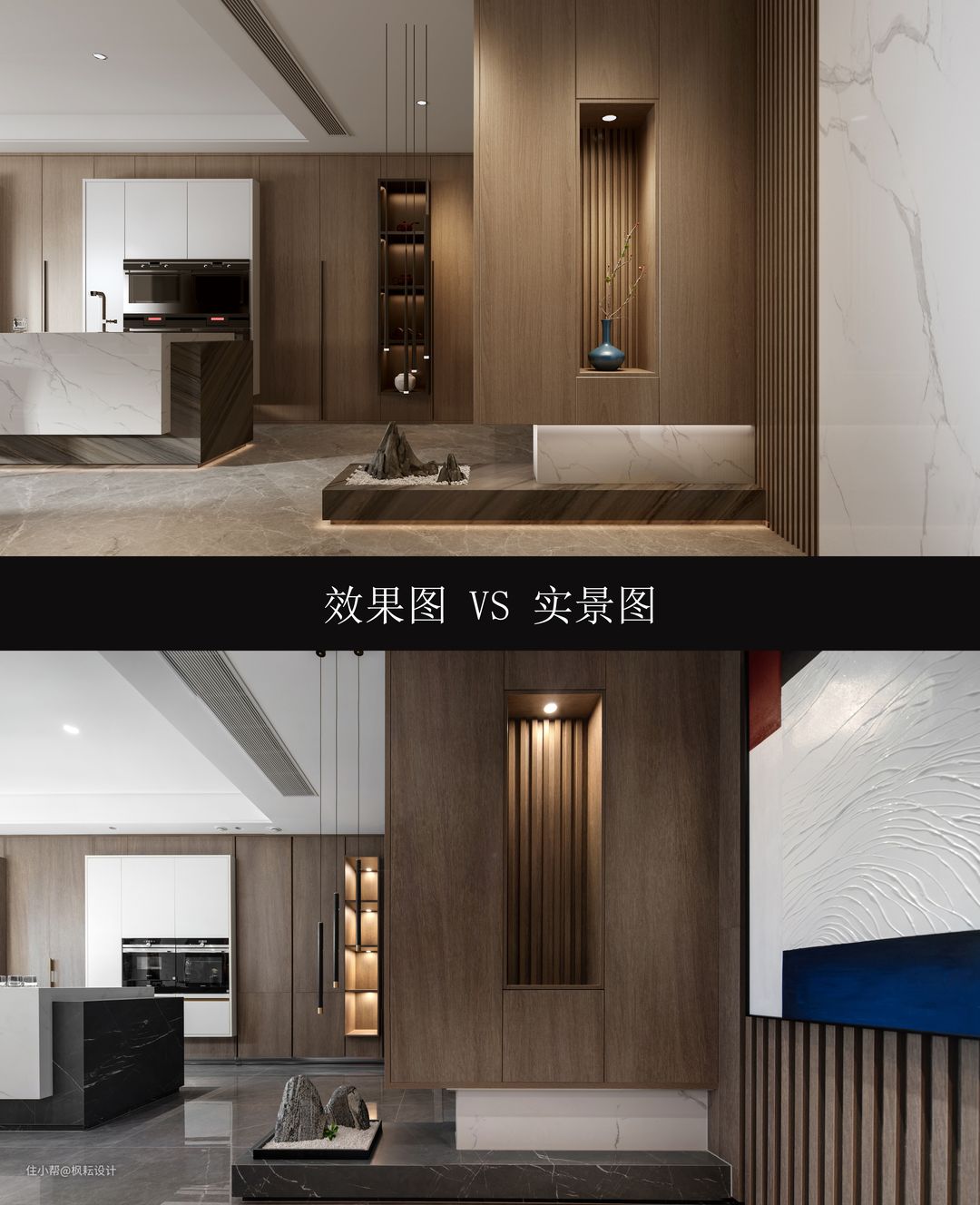 今天,为大家分享一套效果图和完工实景的拍摄对比,大家来看一下,是效果图漂亮,还是实景更胜一筹呢?#效果图对比实景图