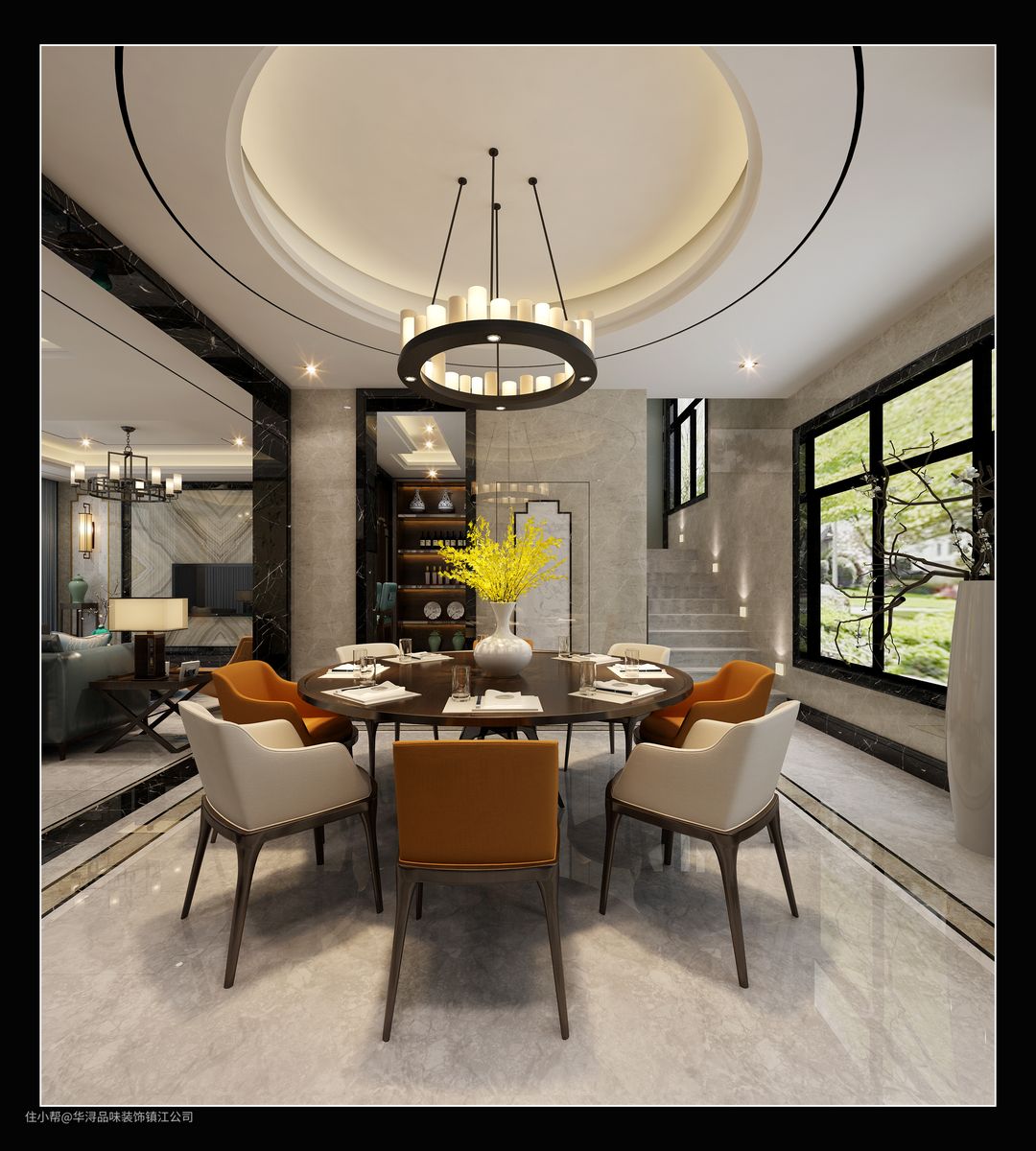 【设计说明】此方案为一套面积约260 平方新中式居所,在设计上提炼了中式经典元素并加以简化和丰富,在家具形态上更加简洁清秀,同时又打破了传统中式空间布局中等级、尊卑等文化思想,空间配色上也更为轻松自然。