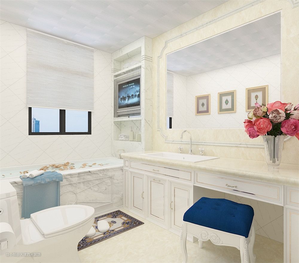卫生间水汽大,普通的布艺窗帘容易潮湿,百叶窗既能保证业主的隐私,同时也能保障良好的采光和通风,让卫生间的水汽加快蒸发,保持室内干燥。