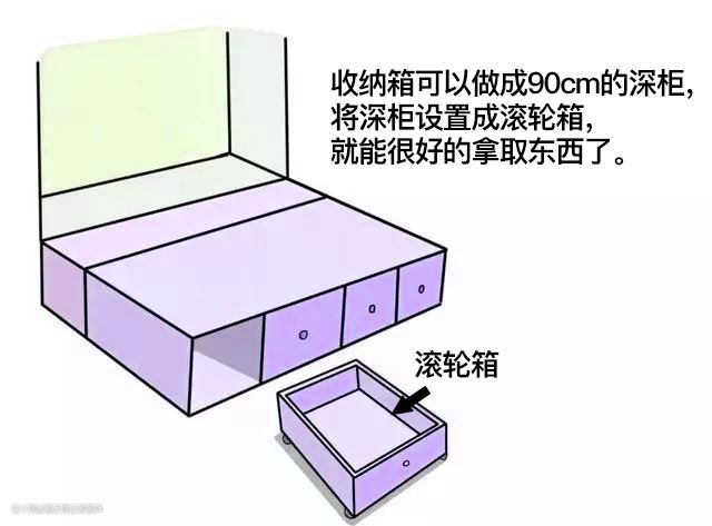 改成榻榻米后还能收纳更大东西,不过建议大家将收纳箱做成滚轮式,拿取东西更方便,上翻式的设计会让你每次都把床垫拿起来。