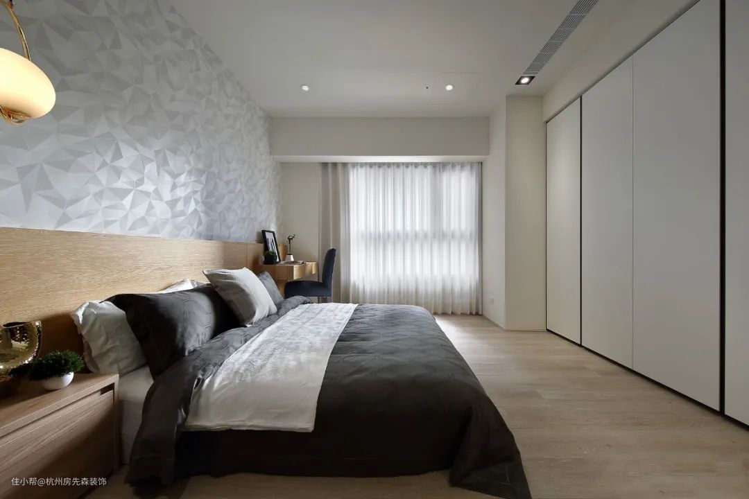 透过「色彩配置」去营造专属自己的睡眠氛围;有些人喜欢暖黄色调、有些人喜欢灰暗色调、当然也有些人喜欢活泼缤纷,但身为拥有丰富设计经验的设计师强烈建议:卧室色调不宜过于缤纷或灰暗,过于缤纷容易使人情绪亢奋,过于灰暗则易使人情绪低迷,应尽量挑选较为「轻柔」或「稳重」的色调,像是「木质调性色」或「淡蓝色」等,这类型的色彩配置较能使人沉淀心灵、舒缓精神、减少入睡时间。