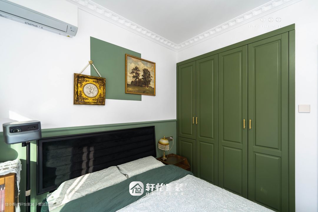 到顶的衣柜设计,把空间利用到极致,同时一抹绿色的色调,一眼看过去就感觉超高级吖~