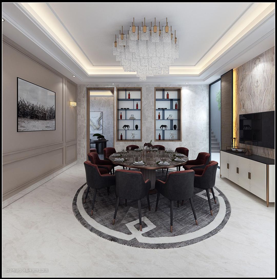 所用材料:墙布、白色乳胶漆、大理石地砖、轻奢灯具、轻奢壁画、水晶主灯、极窄装饰条等