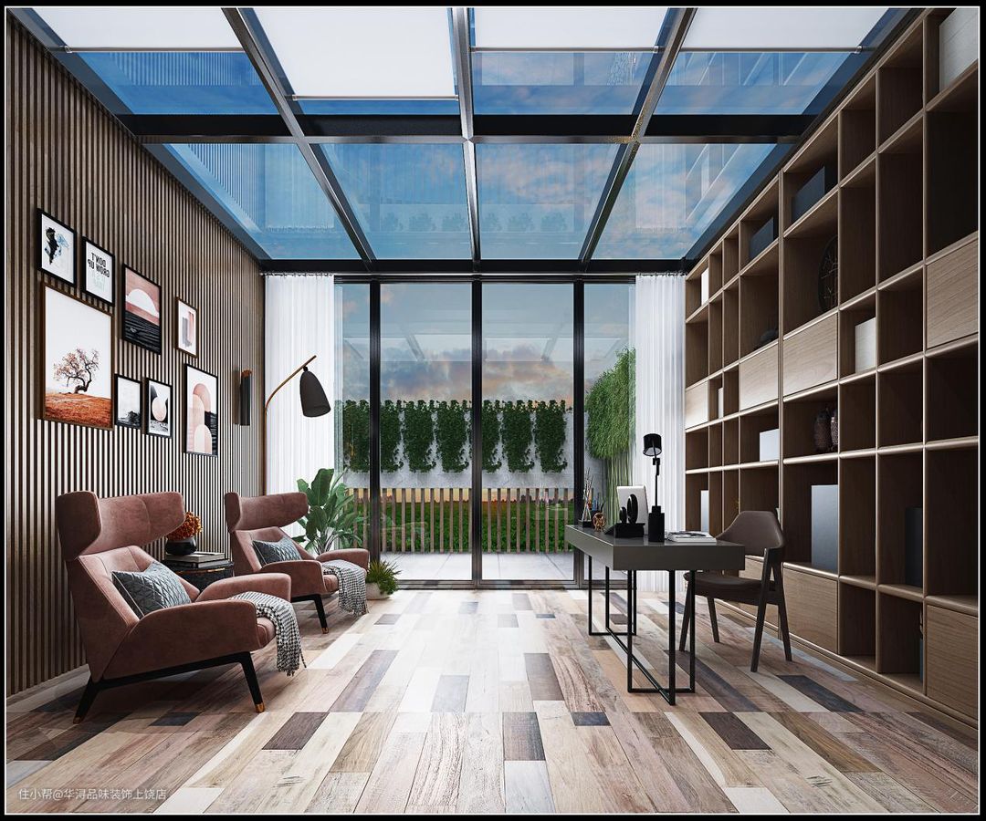 在设计师的综合设计下,室内配备了阳光房一处,这可是非常棒的地方。这里综合配置了休息房和书房的两大功能,业主可以在这里会客、读书、享受日光浴,简直是不能再享受了。