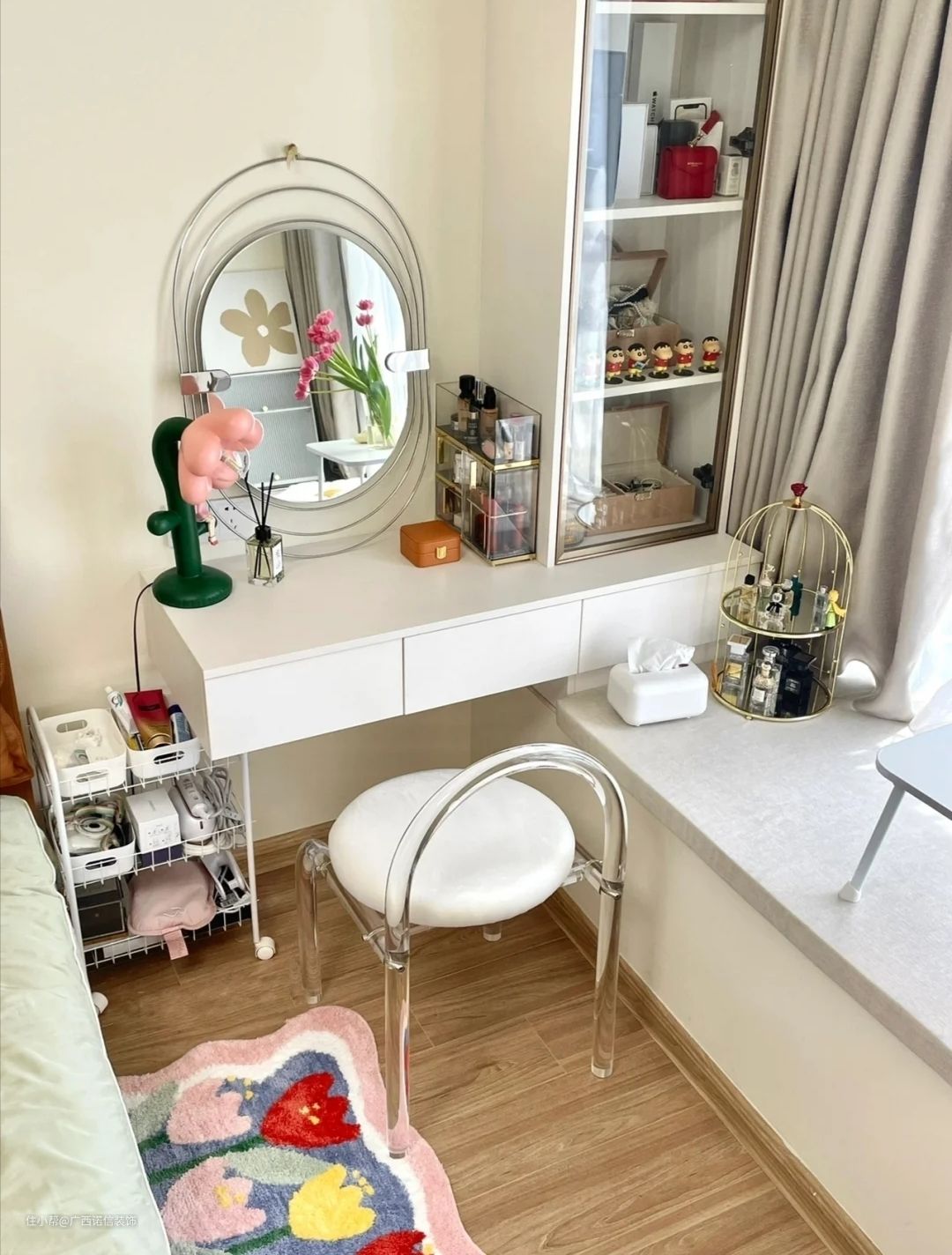 经常有人问:我的卧室面积小,放不下梳妆台怎么办?有人因此舍弃了梳妆台,有人把洗漱台当梳妆台用。对于爱美爱化妆的姑娘来说,怎么可以没有一个梳妆台呢?