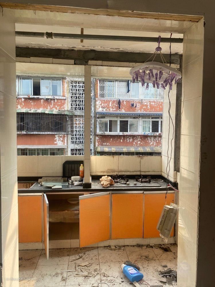 户型就是一个简单的长方形,窗户全朝南,以前是老房子,旧得不得了,采光还可以。到处都看上去旧巴巴的,不仅没有点审美,且质量堪忧。