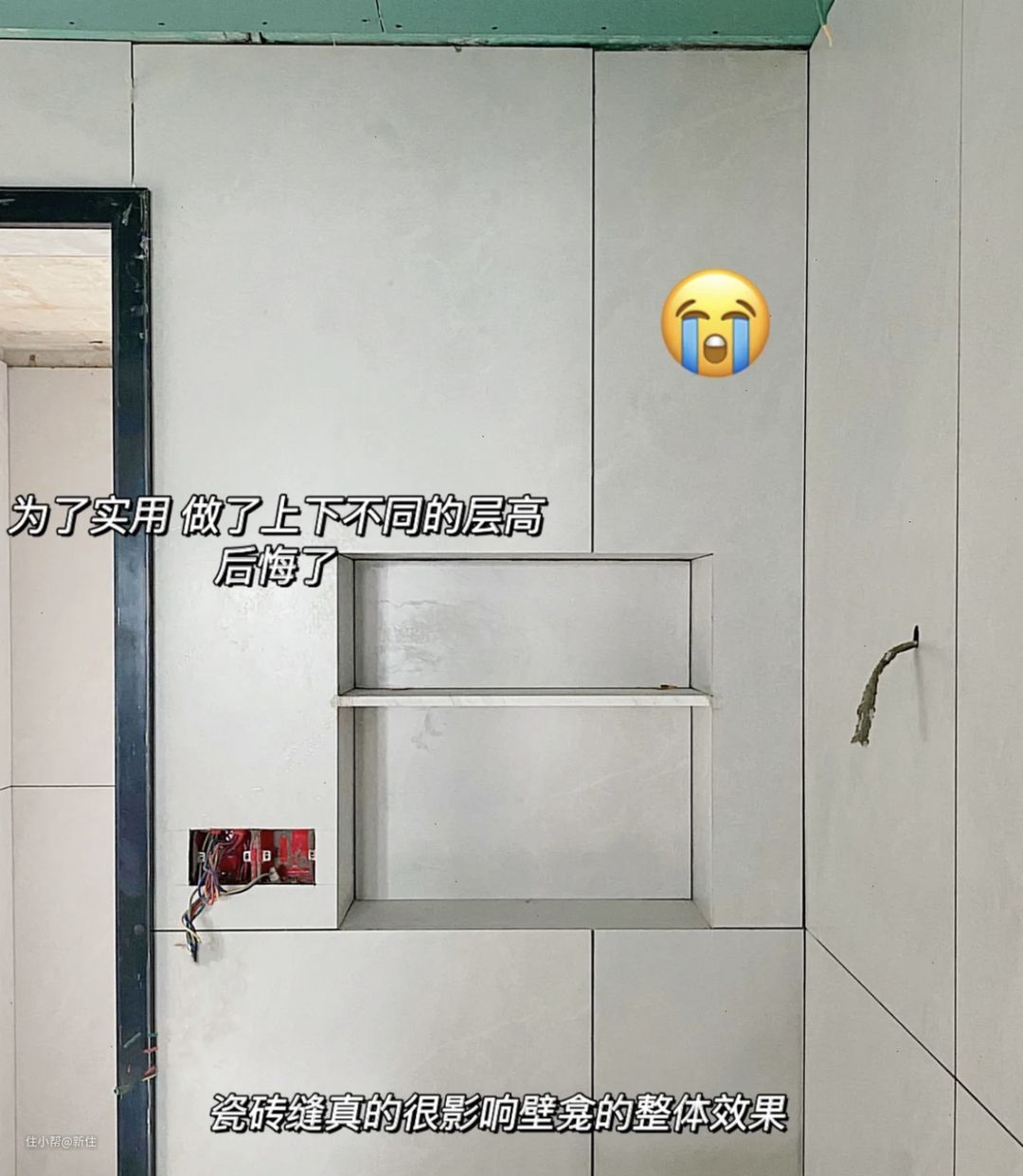 大部分的壁龛做法,并不是我们想象的,在墙上挖个洞就行,都是需要额外砌墙的,如果刚好要包管道或者有个夹缝,可以顺便做还好,倘若额外砌墙实属不划算。