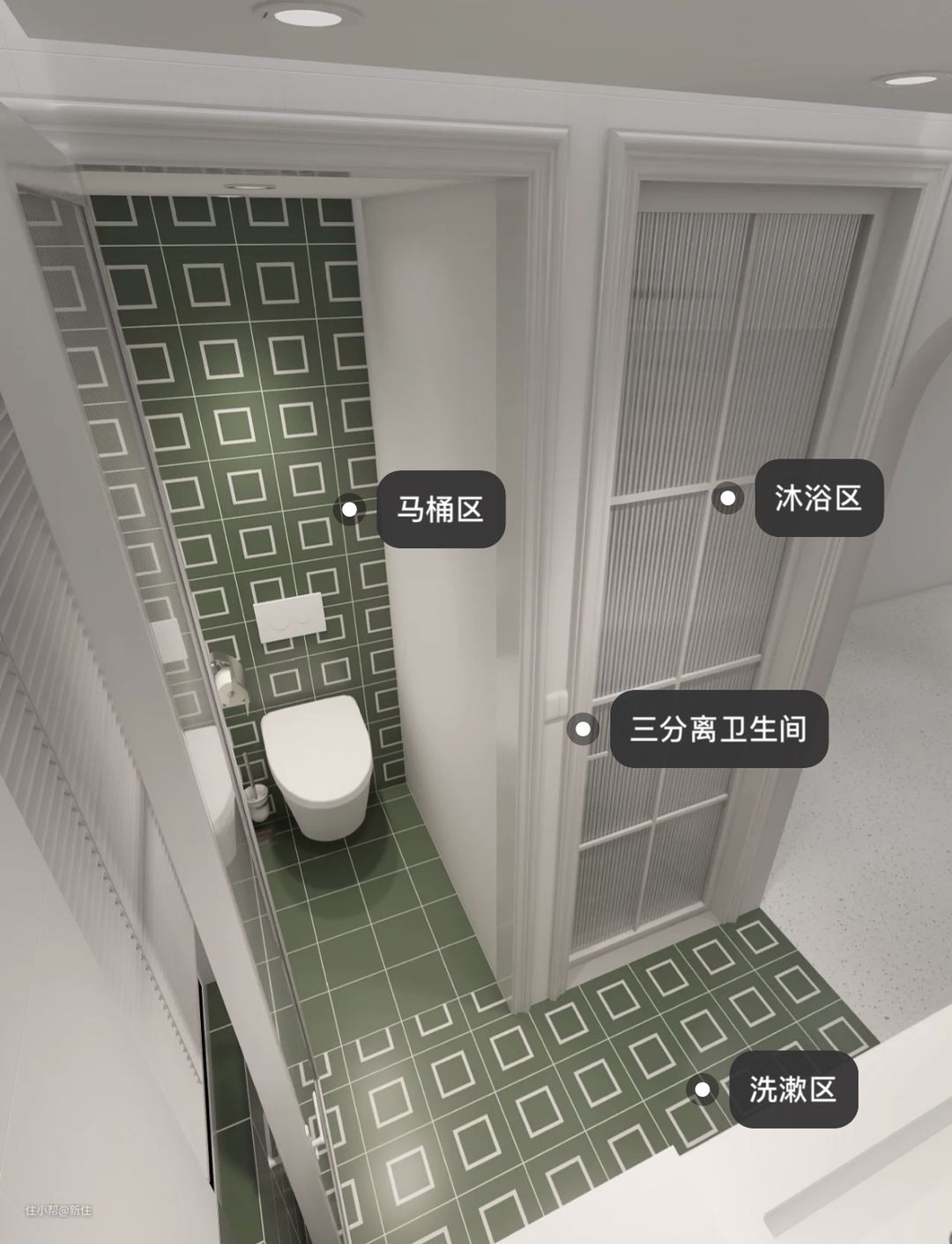 想要这种效果,还是建议轻质墙体,完全隔离开来,做到真正的干湿分离。