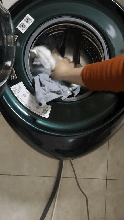 ▲冬天的衣服洗烘完后,拿出来的时候还是温热的,整体很蓬松,不会出现晾晒后板扎的情况,外部也很平整。
