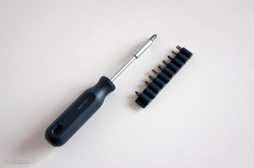 小猴精工家用工具箱所配备的磁吸螺丝批把手还采用了防滚切面设计,手感好易把控,可以拧好每一颗螺丝钉。另外还配有10颗不同类型的S2合金材质精工批头,硬度够高表面还经过防锈处理,基本上可拆卸家中所有常见的螺丝类型了。