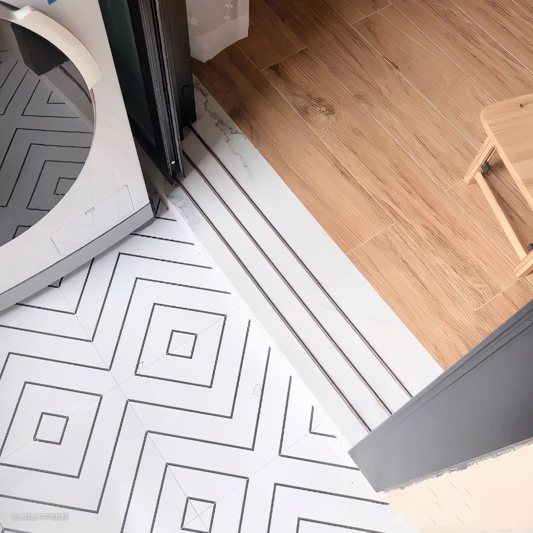 如果家里有的房间铺瓷砖,有的房间铺木地板,那么地板和 地砖的交接处就得做好收口、过渡,过渡就需要用到门槛石、收边条波导线等材料。