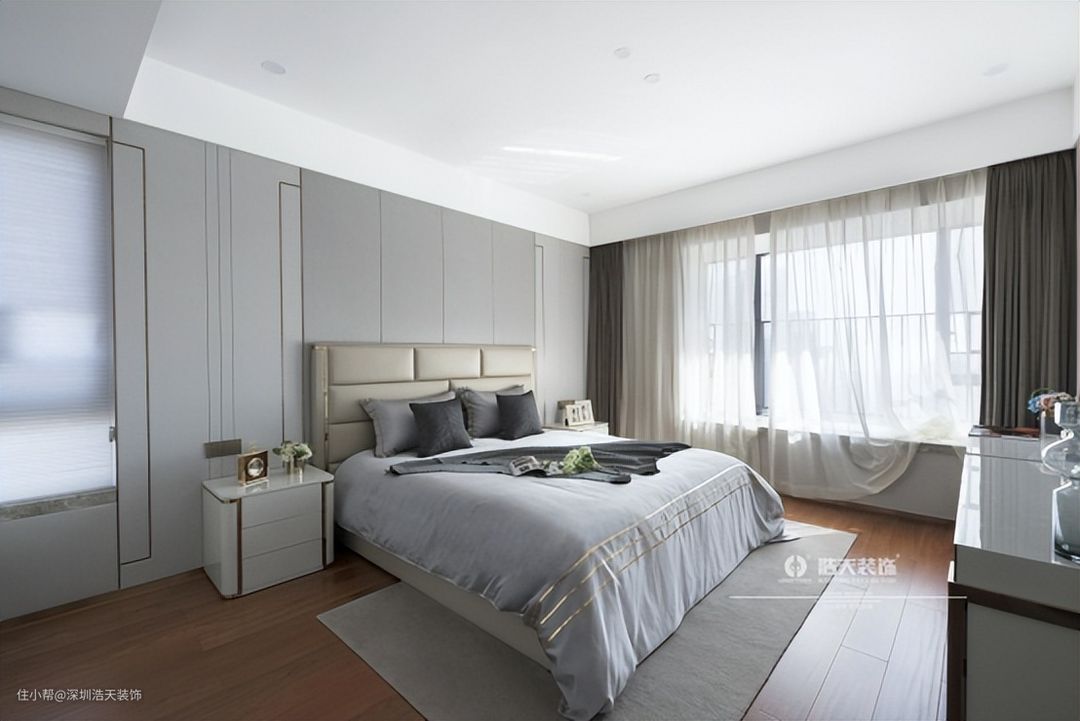 质感与舒适,艺术与温度,集纳于一室,生活的确幸皆藏于仪式感。在卧室的设计上,浩天设计师追求的是功能与形式的完美统一,体现出一种优雅独特、简洁明快,时尚而不浮躁,庄重典雅且不乏轻松浪漫的感觉,传达简约、舒适、低调而内敛的生活品质,同时又不失精致。