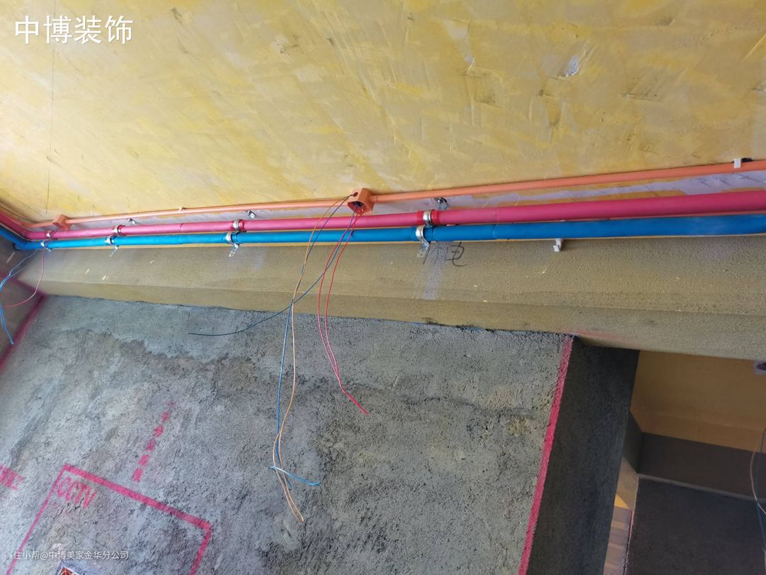 1、墙保地保涂刷 2、水电材料到场 3、水电开槽 4 、水电材料进场 5、水管线路铺设