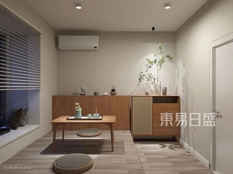 灰色地板呈工字形排列,与其他活动区巧妙地做出划分。茶室需要沉淀下心态,于是台面抬高数公分,让人踏入时,凡尘琐事均落在外部,品茶时心境自然更加舒缓平和。