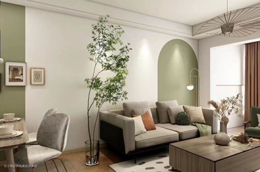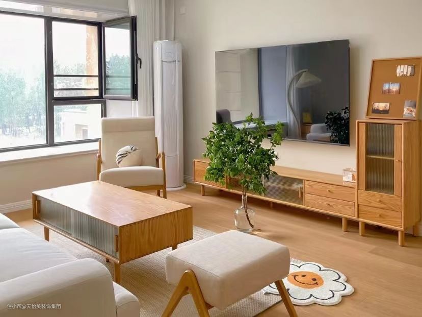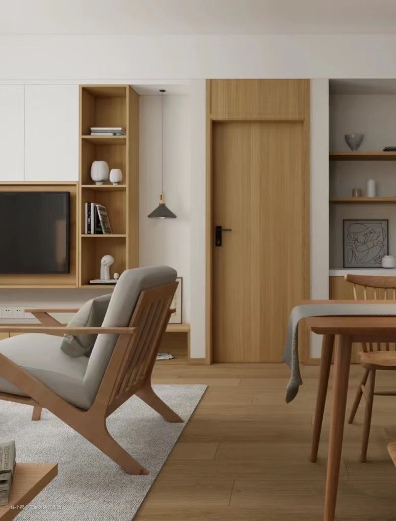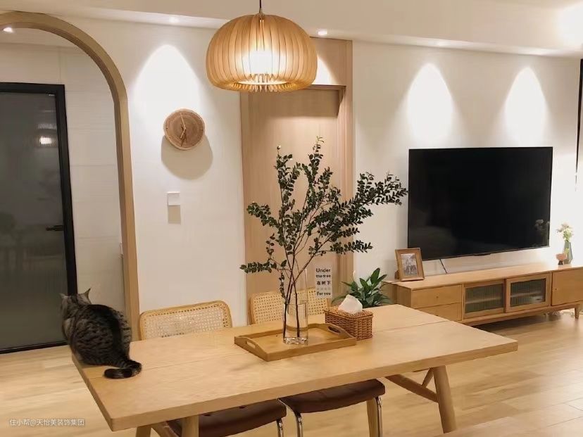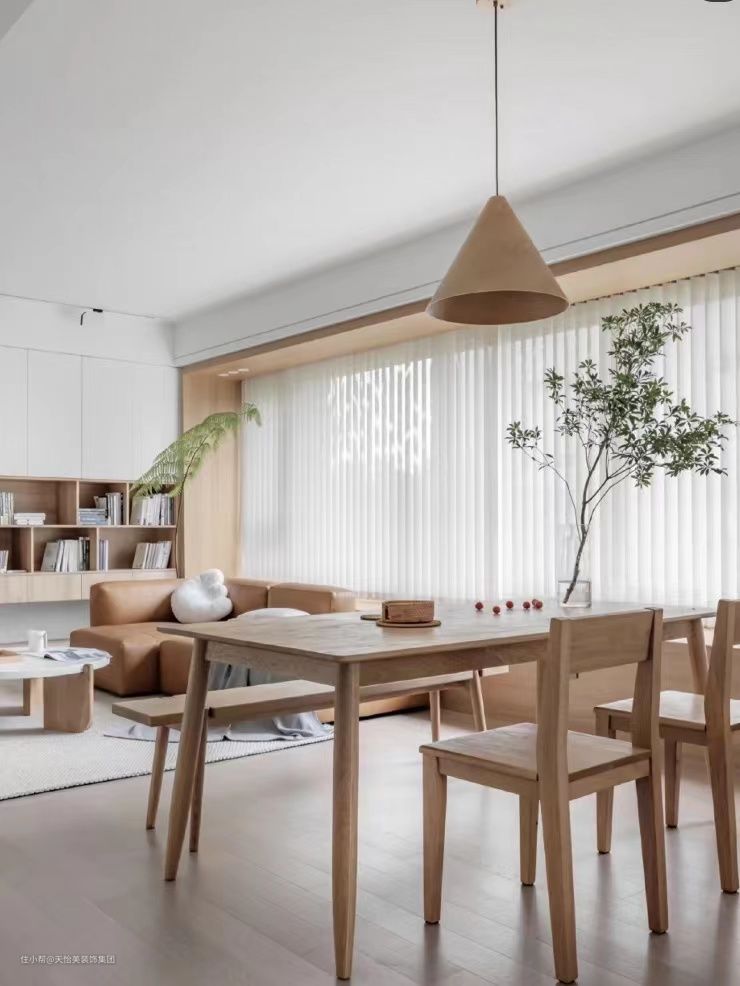 原木风要求统一,是要有“统一面”,在一个平面上少做拼色,尽量用同类的材质,才会有简洁、大气的高级感。如果觉得纯色略单调,可以在色彩比例上融入上述所讲的米、茶、咖、棕、绿等。
