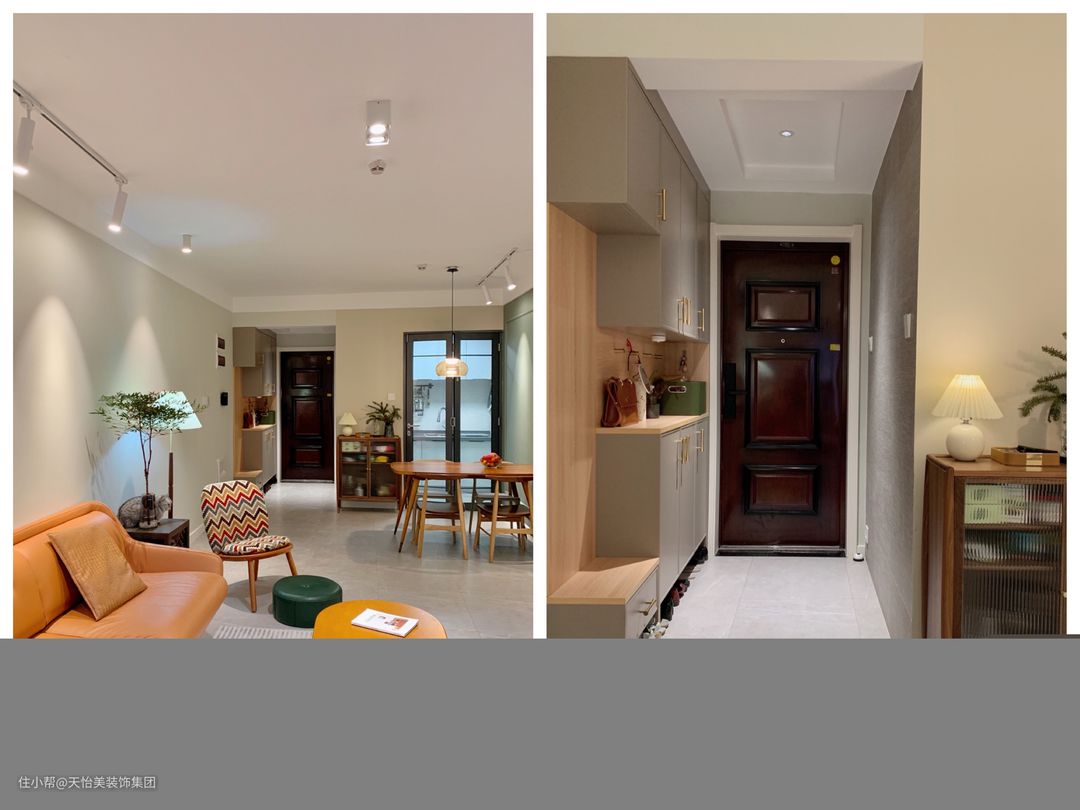 ■光面的瓷砖、柜门,因为颜色占比太高,尽管它本身很高级,但是在原木风搭配上,过于明眼。所以尽量选择哑光的材质,突出柔和的氛围。