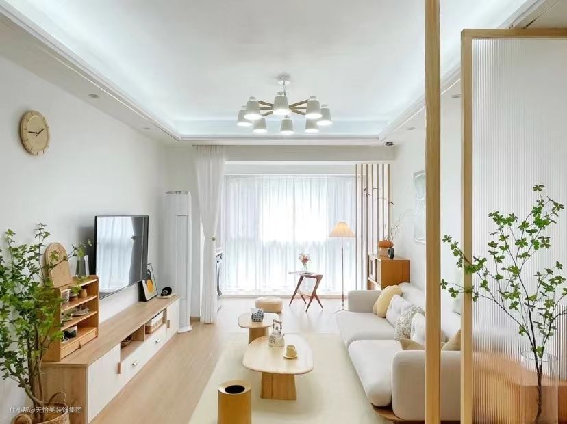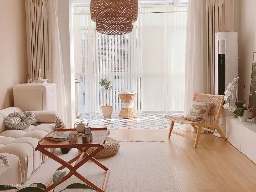 ■软装选取上多为讲究,沙发多为布艺材质,窗帘可以选纱质,也可以出现日式装修中常用到的百叶窗、香格里拉帘或者梦幻帘。