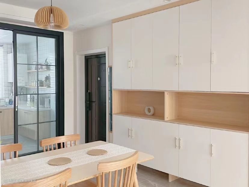 同样要做好简洁、统一的外表,比如柜门上的把手,不可太夸张,尽量弱化存在感强的细小物件,做到简洁,提升高级感与质感。